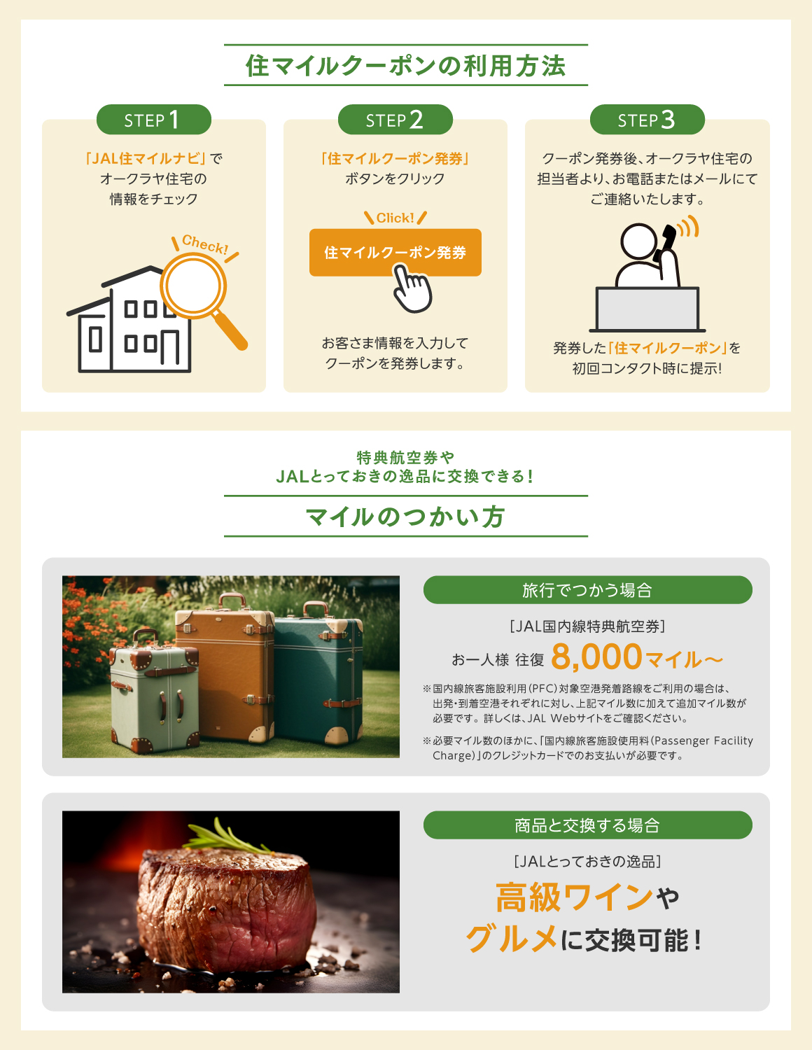 - ※住マイルクーポン発券後、オークラヤ住宅の担当者よりご連絡いたします。