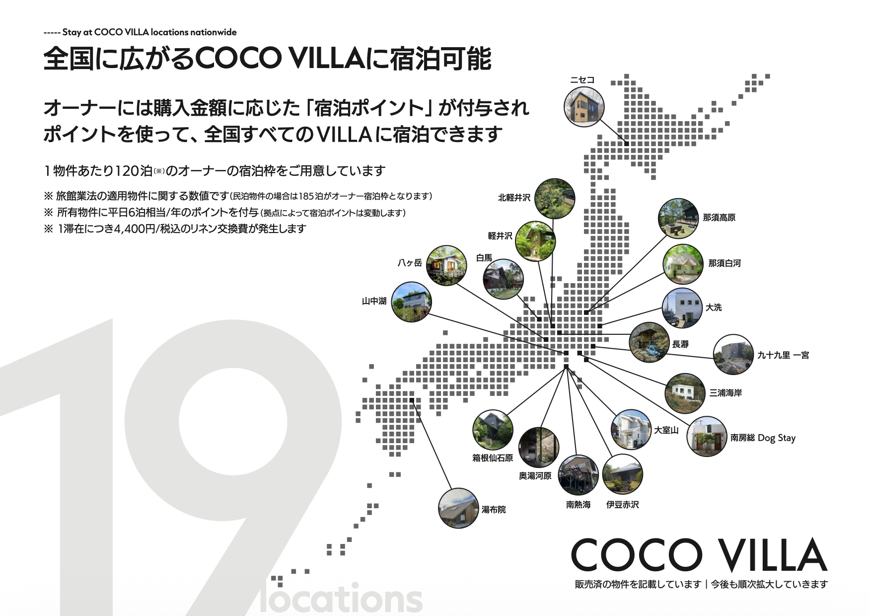 各オーナーには購入金額に応じてポイントが付与され、平日6泊相当の宿泊が可能です。