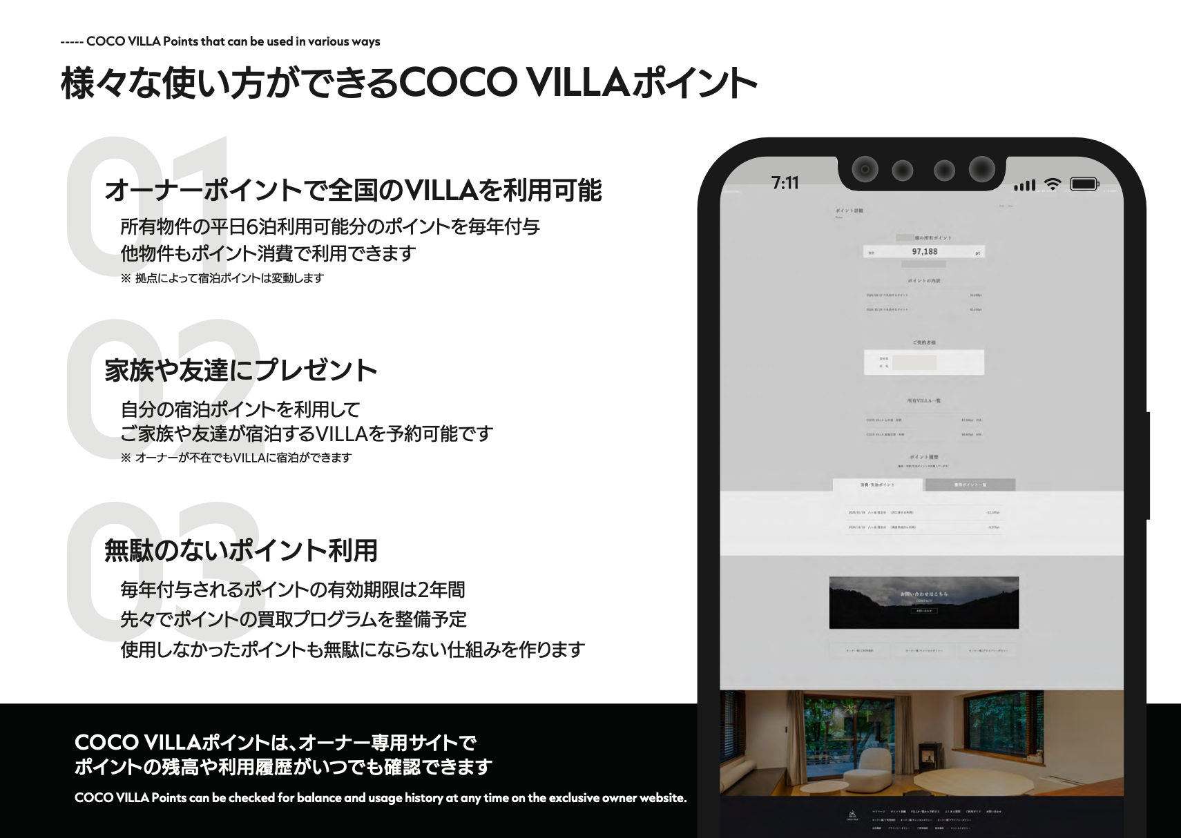 ポイントは自分がオーナーの拠点に限らず、全国のCOCO VILLAで利用できるほか、家族や友人へのギフトとしても活用できるなど、ライフスタイルに合わせて柔軟に使える仕組みです。