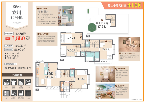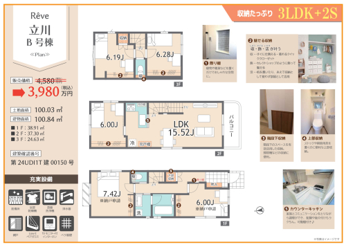 【全3棟中2棟販売・完成済・即入居可・住宅性能評価取得】土地建物総額3,880万円からの新築分譲。敷地面積80m2超のゆったりとした土地の物件です。建物完成済みなので室内をご覧いただけます。一部家電や設備がついてくる「スグスム」対象物件。詳細はご確認ください。