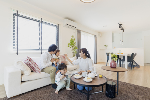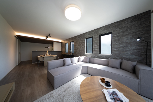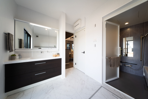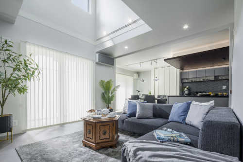 大型パントリーや土間スペース、ドッグラン、+αの楽しいアクセントのある多彩なプラン。全邸 土地57坪超、建物33坪超、全棟2台駐車・太陽光発電付き・断熱等級5を実現。