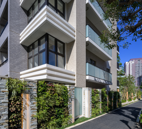 プライバシーが保たれた自由で優雅な空間。建物とエクステリアが調和する洗練された佇まい。